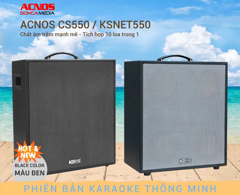 Loa kéo Acnos Ksnet 550 có thiết kế thùng gỗ quai xách, công suất thực RMS 300W – công suất âm thanh PMPO 1000W cho âm thanh sống động. Hệ thống 10 loa trong 1 bao gồm là 4 loa full 6.5 inch và 6 loa Sweeter. Micro UHF không dây nhẹ lọc âm tốt, nâng giọng hát karaoke chuyên nghiệp.