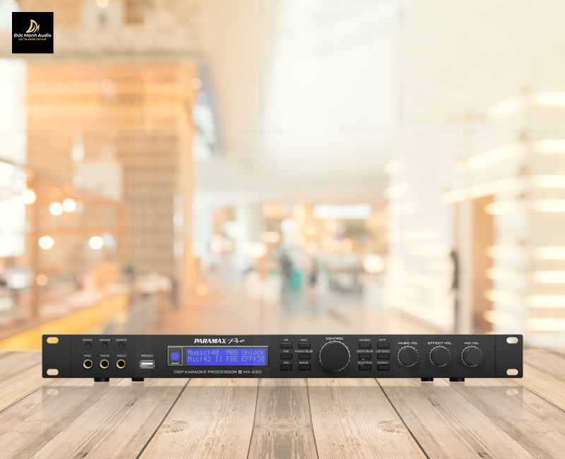 Vang số Paramax MX-320 là bộ xử lý tín hiệu âm thanh karaoke với hiệu suất cao, cho phép người dùn có thể kiểm soát độc lập và xử lý tín hiệu âm thanh trên các nguồn nhạc, đồng thời có thể điều chỉnh giọng hát theo yêu cầu bằng các hiệu ứng kỹ thuật số.