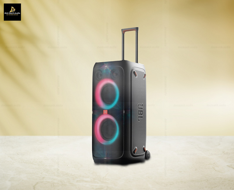 JBL Partybox 310 có mức công suất 240W RMS, thời gian hoạt động lên đến 18 giờ liên tuch, được tích hợp đen LED dạng vòng mới và 4 đèn chớp vô cùng ấn tượng,được đồng bộ với nhịp ca khúc rất hấp dẫn.