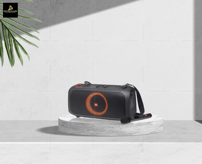 Loa bluetooth JBL Partybox On The Go với thiết kế có dây đeo vai có đệm giúp bạn có thể dễ dàng mang đi đến bất cứ đâu. Mẫu loa có mức công suất mạnh mẽ 100W, được đồng bộ hóa với ánh đèn LED rực rỡ, chuyển động theo điệu nhạc, cùng với 1 tay mic đi kèm giúp bạn có thể biểu diễn cũng như hát karaoke vô cùng ấn tượng.
