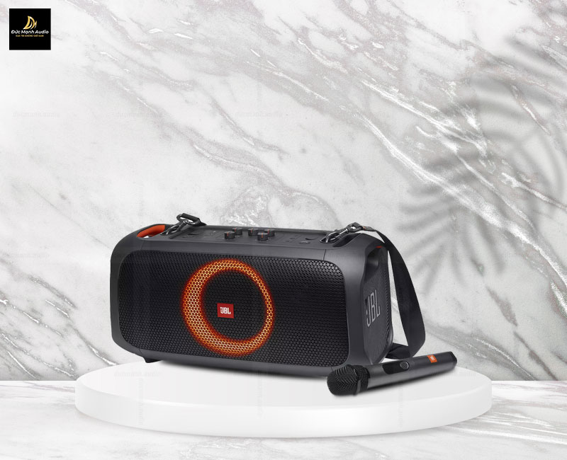 Loa JBL Partybox On The Go sỡ hữu công suất lên đến 100W, được tích hợp đèn LED được đồng bộ hóa theo điệu nhạc. Mẫu loa còn được tích hợp 1 tay micro đi kèm cùng với hệ thống mixer trực tiếp giúp bạn có thể ngay lập tức biểu diễn cũng như hát karaoke vô cùng ấn tượng.