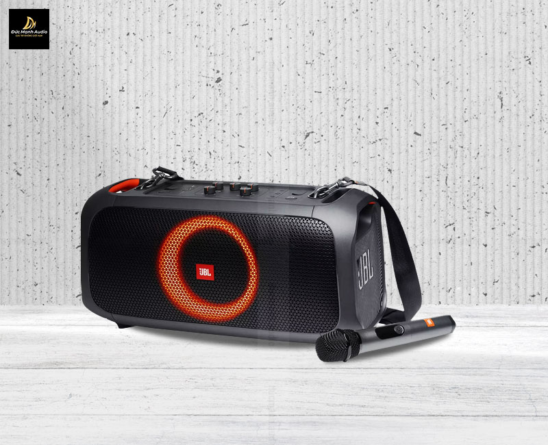 Loa bluetooth JBL Partybox On The Go với chất lượng âm thanh JBL Pro mạnh mẽ 100W, được đồng bộ hóa với ánh sáng đèn LED rực rỡ, chuyển động theo điệu nhạc, đi kèm với loa là 1 tay mic với hệt hống mixer trực tiếp giúp cho bạn có thể ngay lập tức biểu diễn như hát karaoke vô cùng chuyên nghiệp.