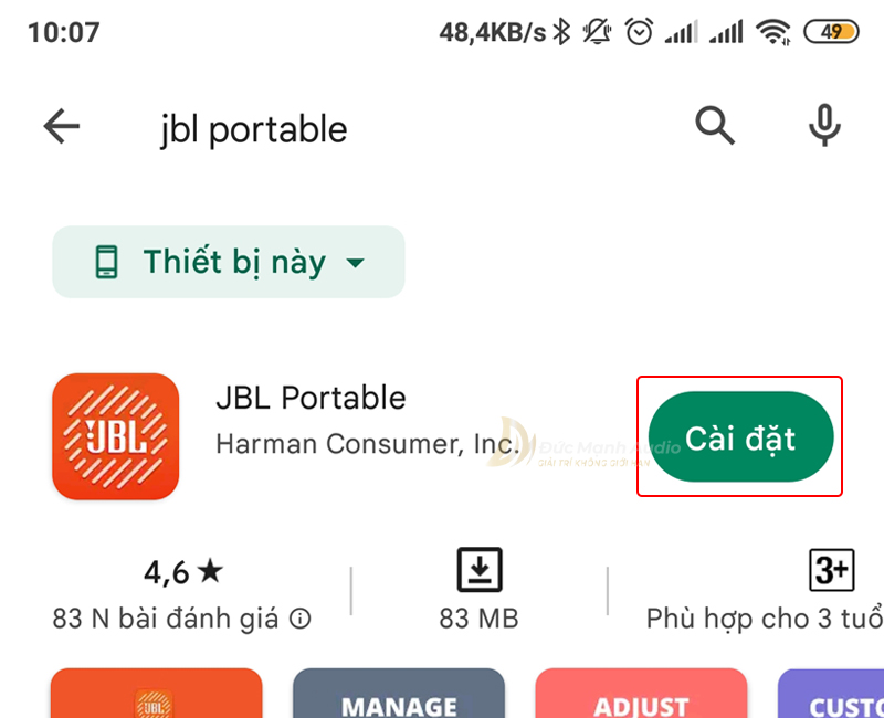 Bước 1: Vào cửa hàng, tìm kiếm từ khóa "JBL Portable" và tiến hành cài đặt ứng dụng trên thiết bị di động