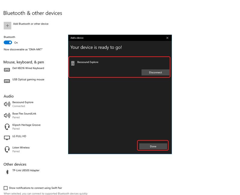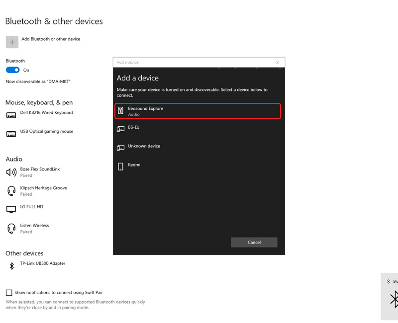 Bước 4: Chọn tên loa Bluetooth để tiến hành kết nối loa bluetooth với máy tính bàn.