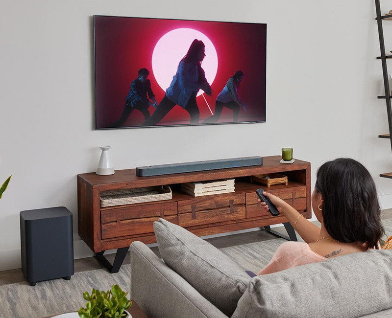 Bạn sẽ cảm nhận được âm trầm mạnh mẽ nhờ vào mẫu loa siêu trầm 10inch không dây đi kèm, mang lại cho bạn cảm giác chân thực kịch tính từ các bộ phim và lan tỏa cảm xúc âm nhạc mà bạn yêu thích.