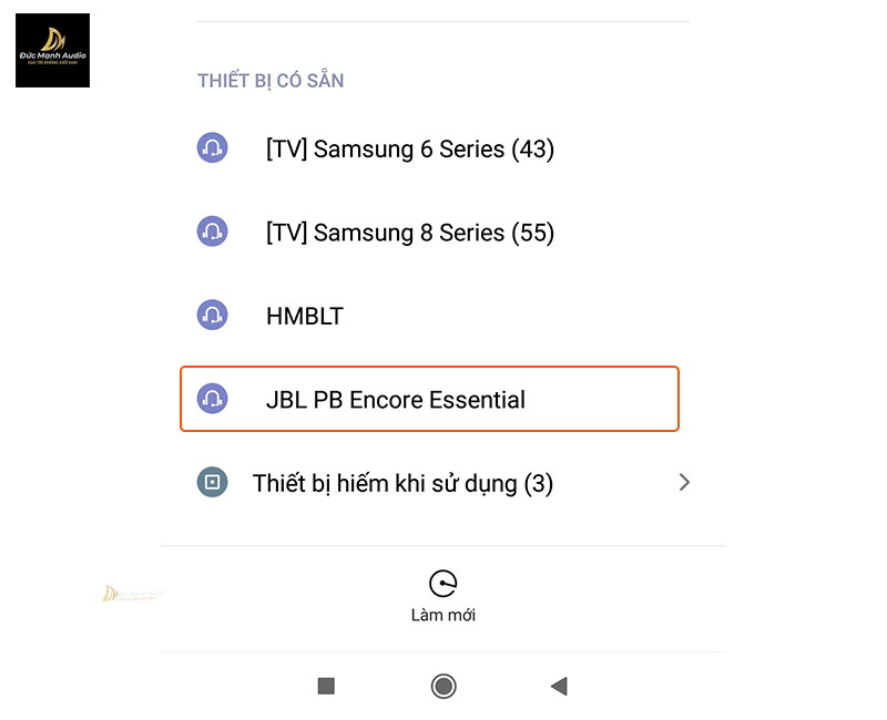 Bước 3: Trên điện thoại, tiến hành mở Bluetooth và tìm kiếm tên loa. Nhấn vào "JBL PB Encore Essential" để tiến hành kết nối với loa JBL.